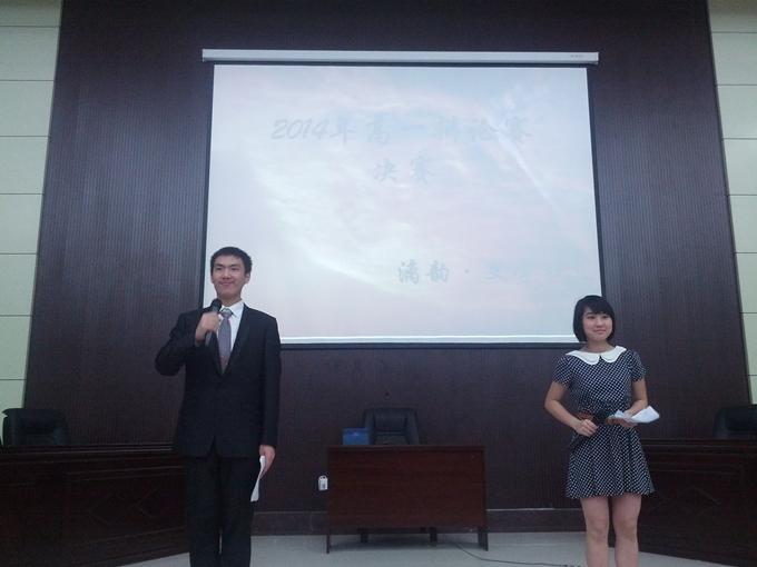 辩论赛场,扬我风采 2014年5月11日晚,我校高一年级辩论赛决赛在报告厅进行。 6点40分,各班进场,7点钟,决赛正式开始。比赛共分四场,前三场分别为75班对阵82班,76班对阵80班,逆