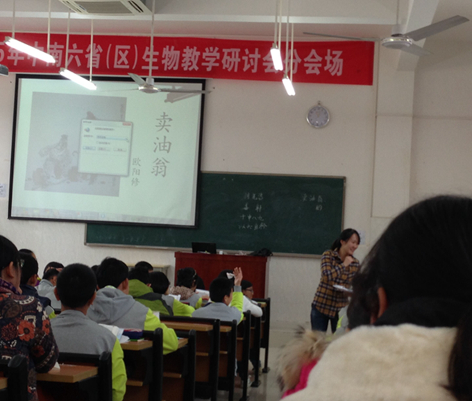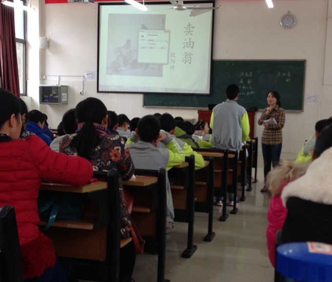 广西师范大学初中语文培训班的区培学员来校研讨交流 我校初中语文教师陶月乔《卖油翁》公开课展示 2015年12月3日,区培计划2015桂林市统筹实施培训项目八桂乡村优秀教师能力提升项