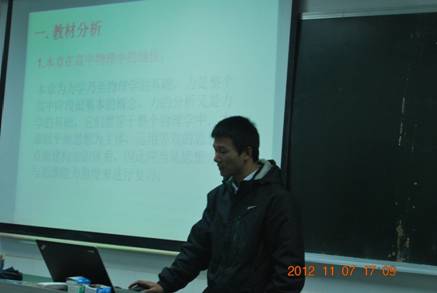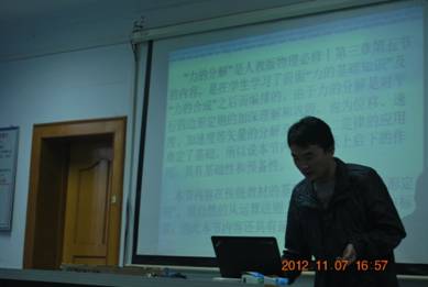 集思广益 备新课标 桂林市高一物理第三次大集体备课在我校育才校区举行 2012年11月7日下午,我校育才校区迎来了前来参加市区高一物理大集体备课的教科所专家和各兄弟学校的同行们.大集体备课活动以新课程理念为指导,以“关注课程,聚焦课堂,研究教学,促进发展”为目标,以建构探究式、合作式、自主式教学模型为原则,以解读课标教材、探讨教法学法为重点,以校际合作备课、示范观摩、研讨交流、反思总结为基本形式,实现全市学校优质教学资源的分享、互补与共同发展.由市教科所组织,全市高一教师参与,各学校轮流承担主备任务,在会场以说课形式与专家和同行交流. 物理组高一备课组此次承担的备课任务是《力的合成》、《力的分解》及第三章复习课,经过老教师悉心指导、物理组多次集体讨论和修改,共同完成了这三节课的教学设计和教学课件,并讨论决定由陈海亮、田力、杨东良三位年轻教师代表备课组说课。三位老师经过多次练习,教研组长和备课组长试听后多次提出指导意见。教研组长、备课组长及组内其他老师还赶到会场进行临场指导,三位老师以娴熟的语言和精彩独到的内容博得了与会老师的一致好评。在讨论交流阶段,他们也从容不迫的接受提问,同时也虚心听取同行们的修改意见,认真做好笔记。对外展示出了我校团结协作的精神和年轻老师积极向上的面貌。 最后,大会主持人、特级教师欧阳雄老师对大会作了总结,他说,这是一次成功的集体备课活动,主备老师准备充分,与会老师听课认真,积极发言,相信这次集体备课对所有与会老师备课和上课都会有很大的帮助。