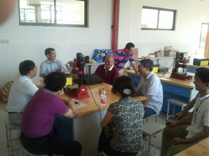 上图是我校通用技术罗柱老师和其他学校老师交流实验室建设和使用管理经验。 近一个月来,有多个学校老师专程赶来我校参观实验室,有的通过电话咨询实验室建设工作。