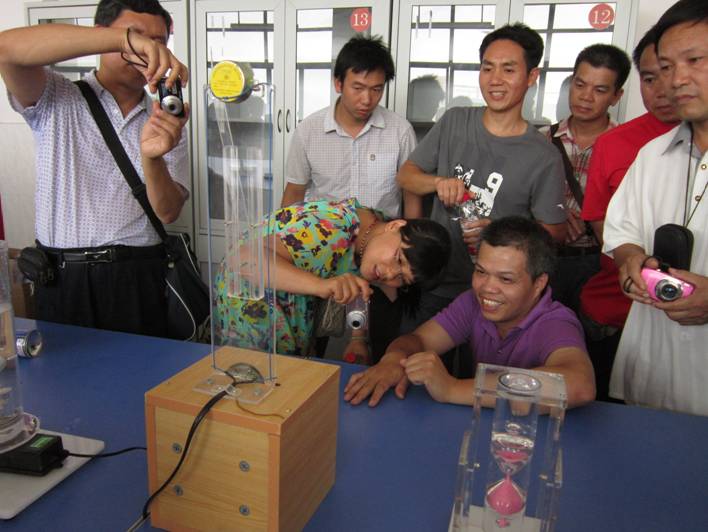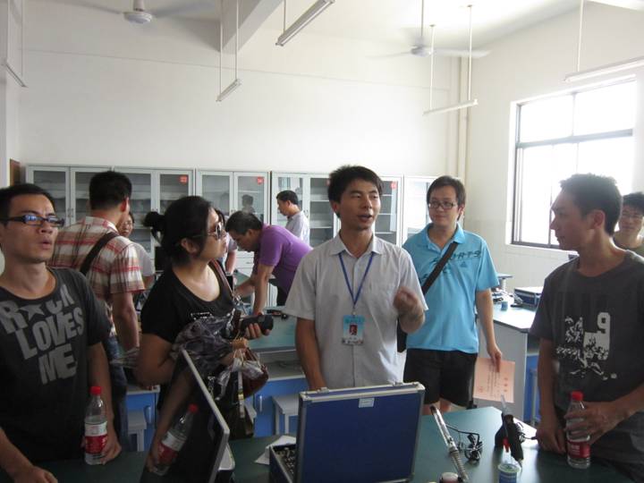 ![]() 2013年7月13日下午,全区《通用技术》教材解读桂林市培训点80余名教师随教育局领导及课程改革领导小组专家来我校参观“科学与技术教育”综合实验室。八月初全区新课程《通用技术》实验室建设校长培训培训会议上,实验室建设专家组领导将我校《科学与技术教育》综合实验室作为全区通用技术学科实验室建设的参考样板。