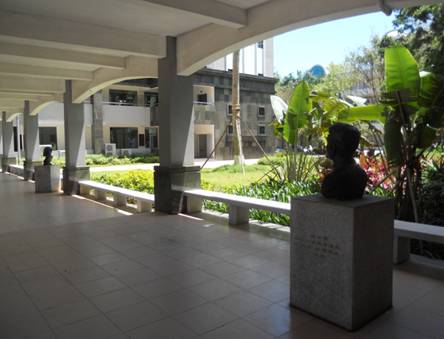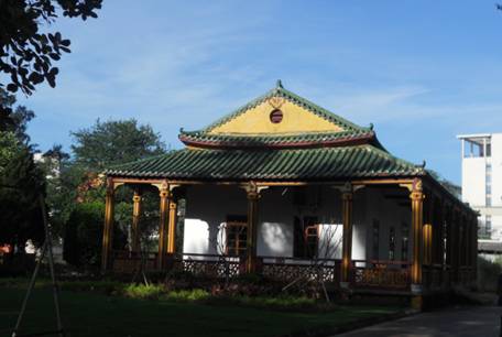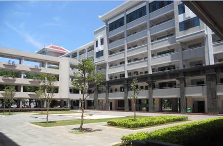 教学楼一角 走进海南中学的独特典雅的校门,便可看到校园里绿树成荫,芳草如茵,高大现代的教学楼映衬着古典中式的亭台别院。在古香古色的凤栖堂听取了陈校长的一番介绍后,海南中学为我们安排了各学科的集中听课,多数学科都有两位不同老师为我们进行课程展示,这让我们感到非常的感动。